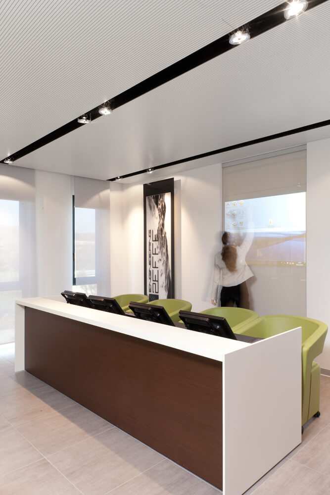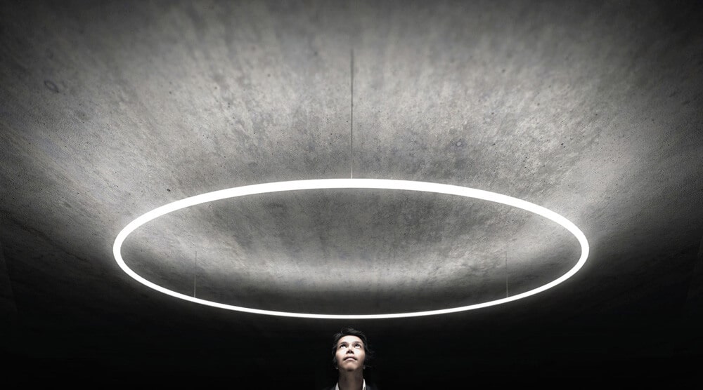 Structural modules in extruded aluminium, prewired gear plates and optics systems. 3 types of installation: recessed, surface mounting and suspended. Structural modules available in 12 different lengths of up to 4736mm, specially designed to allow the lighting designer to alternate as freely as possible different light sources. The lighting sequence can also evolve over time to meet new arrangements, as long as it remains compatible with the initial total length installed.